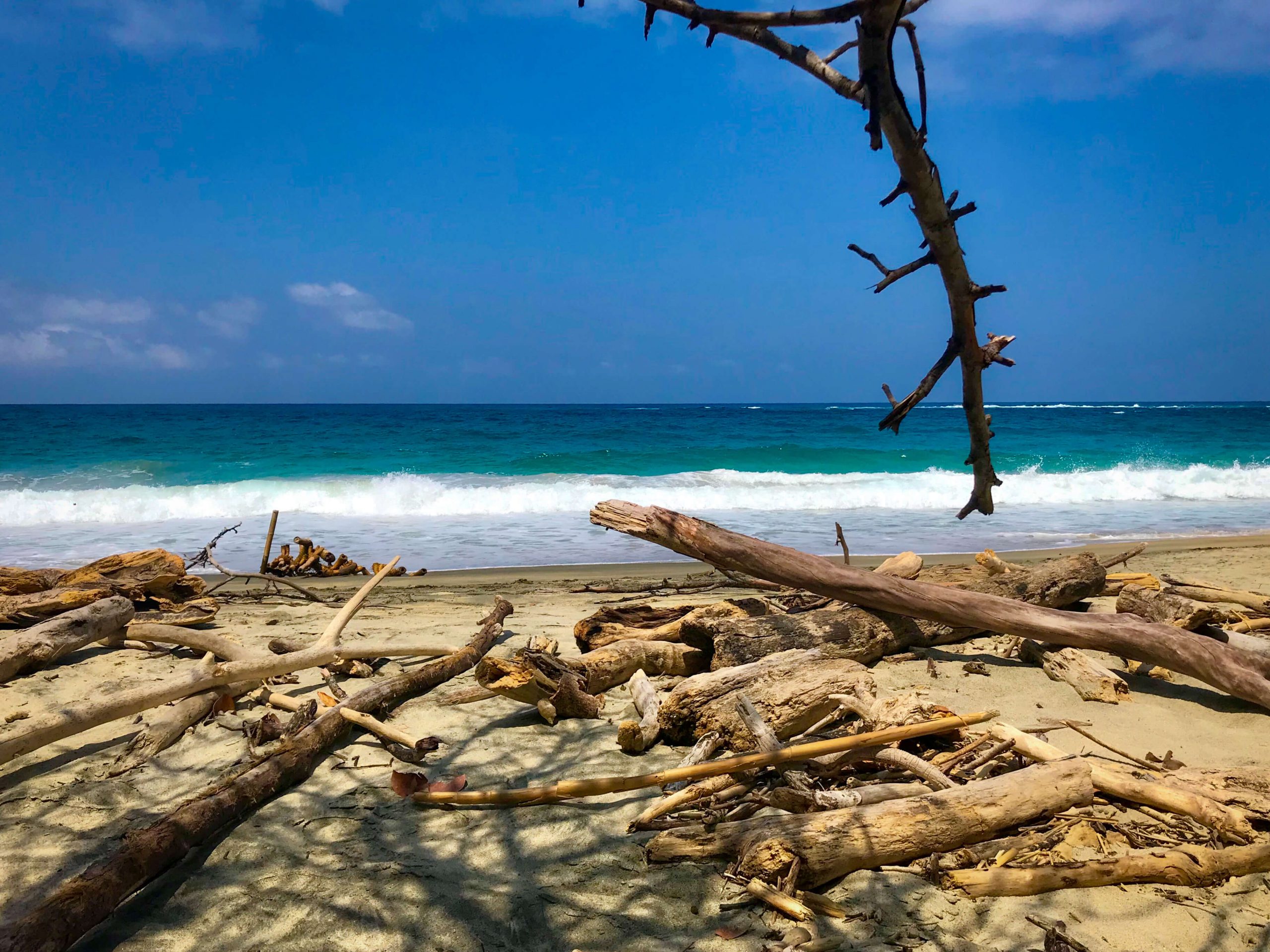 I know, it is very tempting to run right into the water after such a long hike and you finally see the sea. But don’t do it. It’s not safe to swim at many places in Tayrona. You can swim at Cabo San Juan and La Piscina, but also at those places you have to be aware of the dangerous riptide. At the other beaches the current is very strong and dangerous.