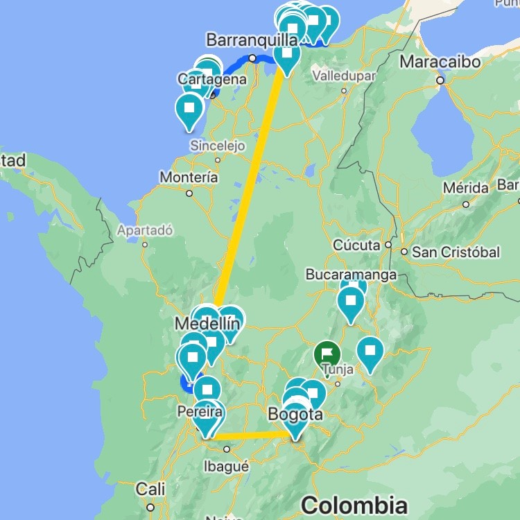 This map shows you my 3 week trip to Colombia I did in September 2019. We started in Bogota and ended our trip in Cartagena three weeks later.