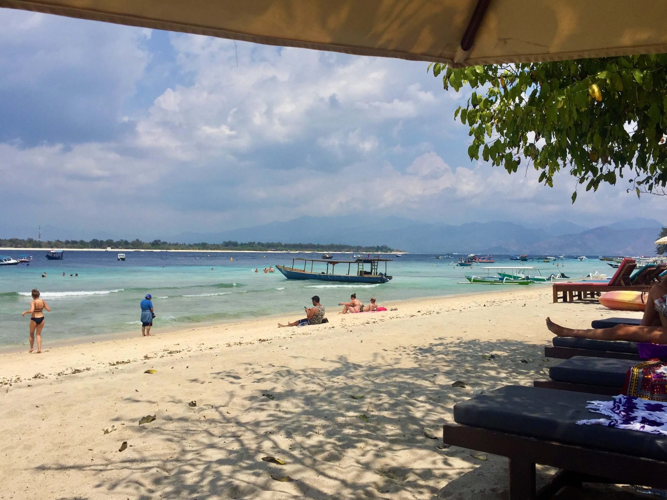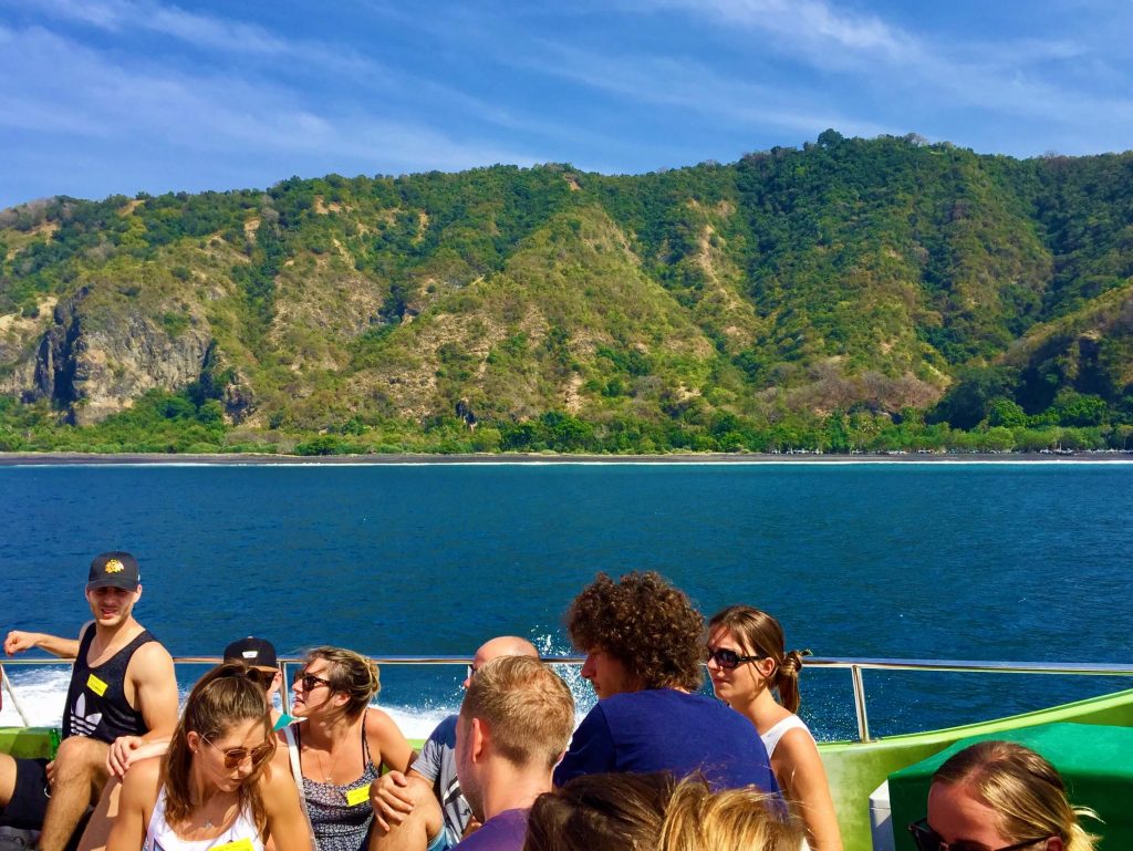 After my stay in the green surroundings of Ubud, I wanted some beach time again. I choose to go to The island Gili Trawangan (or: Gili T). Again, the organization I booked my transport to Gili T with, picked me up at my hotel with a minivan and dropped me in Padang Bai. Everybody was pushed into a restaurant to collect the boat tickets to Gili T. Sometime later I stepped on the boat on the upper deck and the party started right there: very loud music, sun, nice people and beer. Did I mention it was only 9 am? Actually, that wasn’t a problem for the Aussies and British on board.