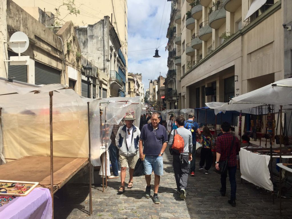 The San Telmo market, or: Feria de San Telmo, is every Sunday in the streets of the neighbourhood San Telmo. The heart of the market is in Plaza Dorrego, although it spills out into the surrounding blocks. There are many stalls on the streets selling antiques, souvenirs, art and relics. In between you can find stalls selling Argintinean delicacies. Everywhere is the sound of live music. It’s a very fun and busy place to be. You can easily spend hours here.