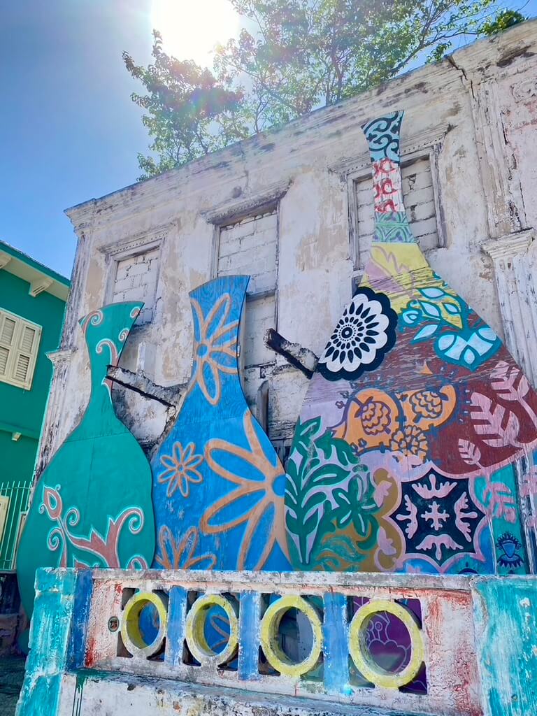 Walking from the pontoon bridge into the city, eventually you can follow the street along the coast: Pietermaai. You can find BijBlauw on this street. BijBlauw is a boutique hotel, concept store and hip restaurant. We enjoyed a delicious tuna poke bowl and a crisp white wine with a spectacular view.