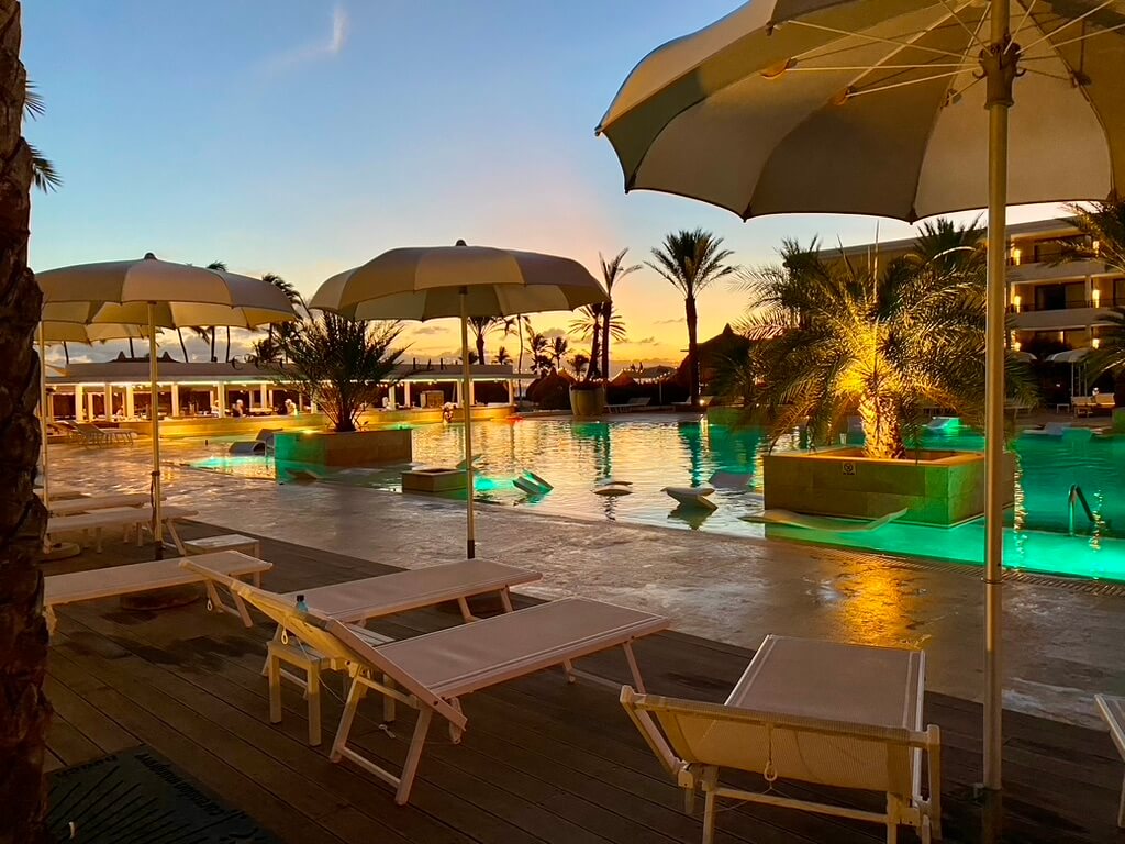 The rooms are nice and spacious. Every room has a big balcony and space to hang your wet swimwear. There is lots of choice of well prepared food in the main restaurant. For the Dutch people: you don’t have to miss your portie bitterballen and frikadellen (Dutch snacks), because you can order them all day long (yes, even for breakfast). If you want something else for dinner, spend a night in the Italian restaurant, sushi bar, fish restaurant or barbecue place. You’ll have to make a reservation for these restaurants.