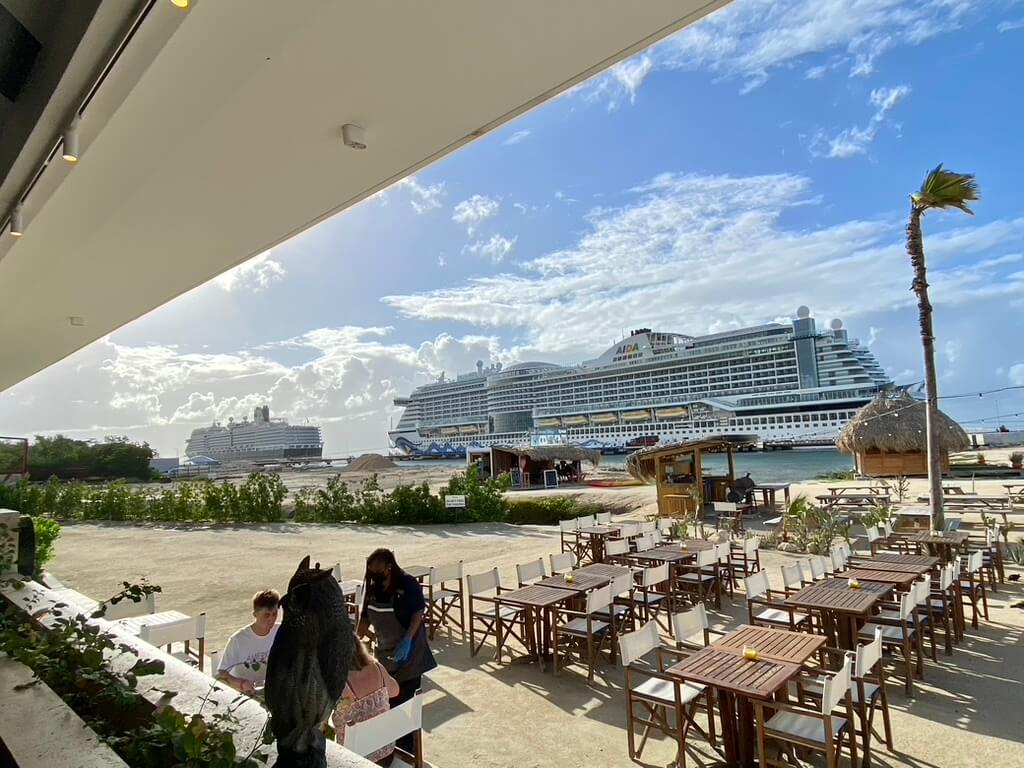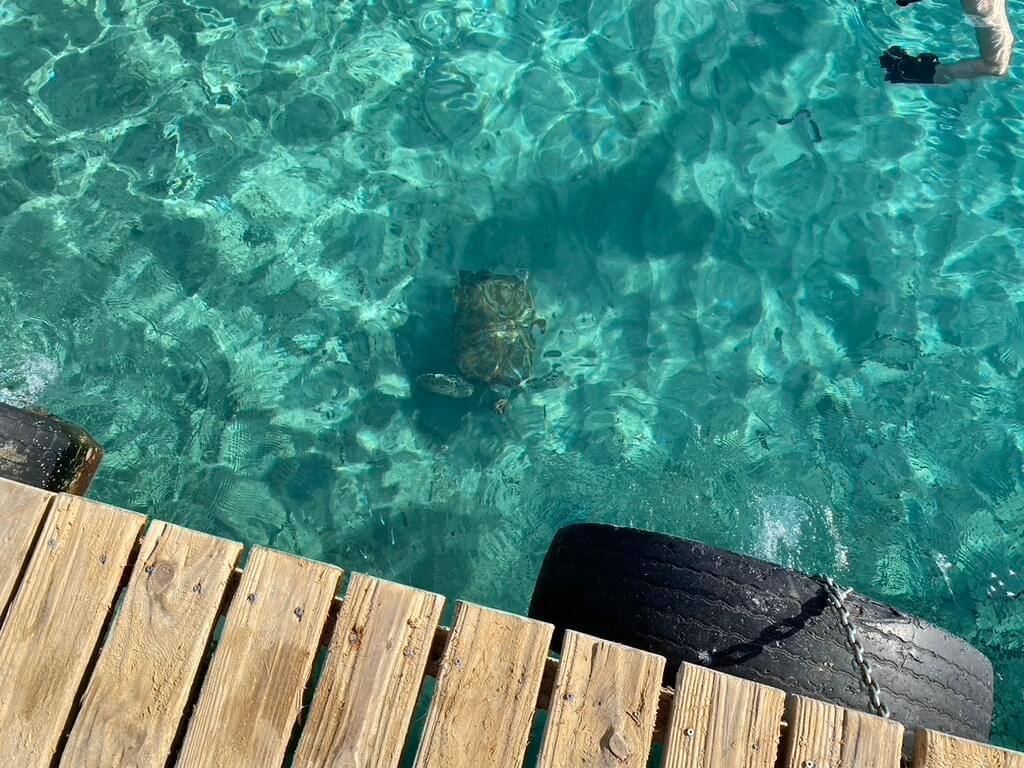 The only daily stress might consist of the choice for the pool (multiple options) or the private beach. There was enough space on the beach and there was always a huge thatched roof parasol available. Great to sit here in the shades – with or without a baby. Every day you will be surprised with views of a newly arrived cruise ship, but don’t worry they don’t block the whole ocean view. The sea is calm because of the pier in front. Bring your snorkel and discover the underwater world and maybe you’ll also be rewarded with a turtle in this bay! The hotel owns a dive shop and you can book other water sport activities.