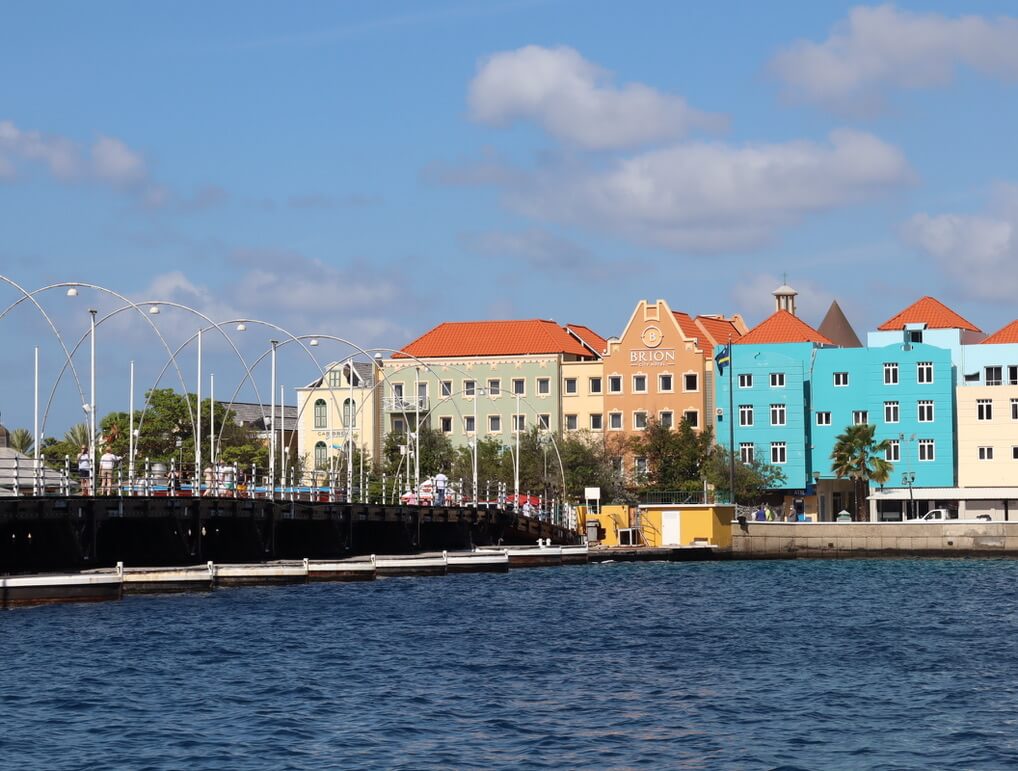 On your walk to the bridge you will pass the bright coloured Antillean houses of the city. The houses are a mixture of the Dutch canal houses with their beautiful facades and the cheerful Caribbean colours.